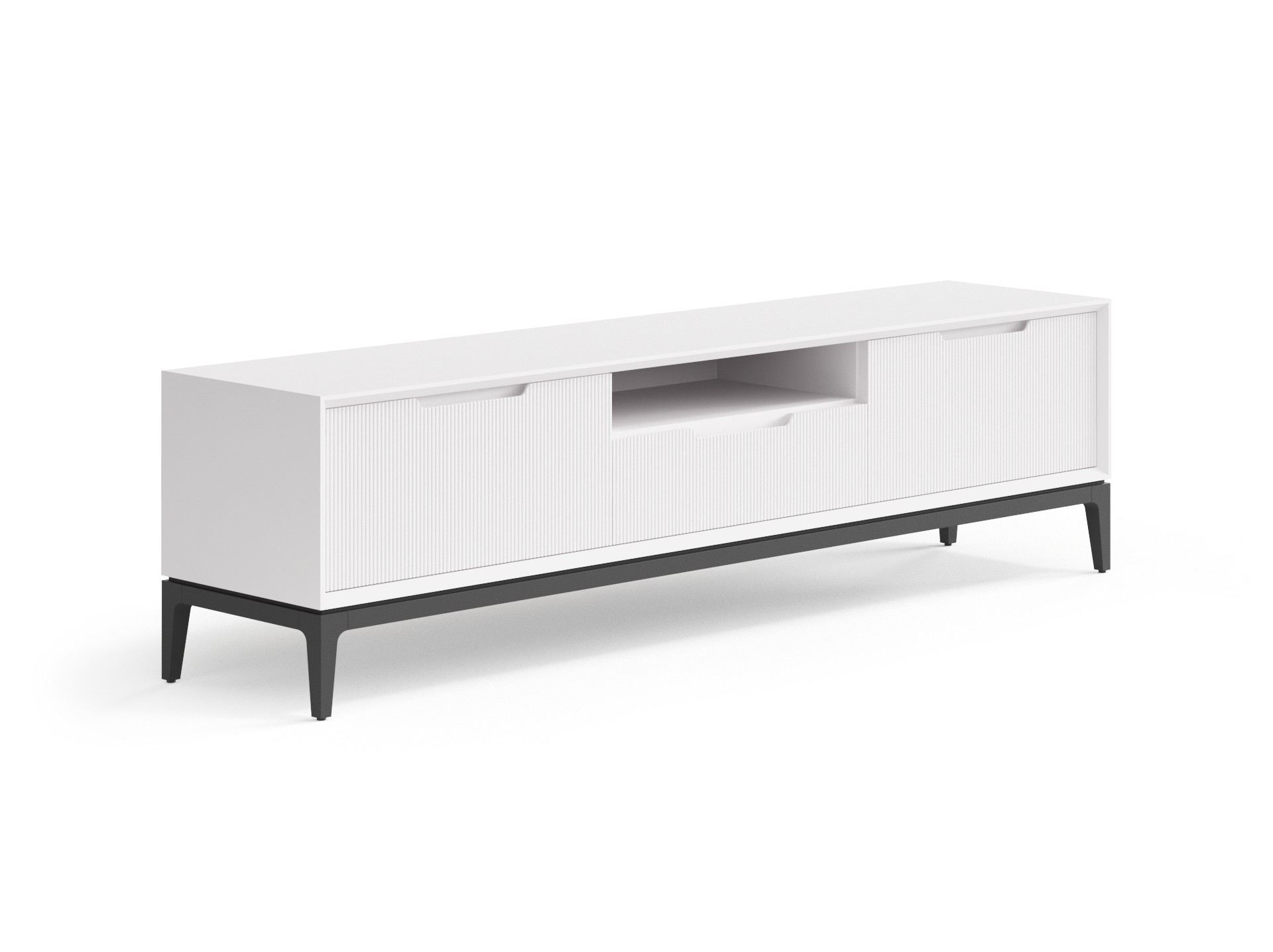 Стильная ТВ тумба гармонично впишется в вашу гостиную и сделает зону отдыха приятной и комфортной. Боковые дверцы и центральный выдвижной ящик позволят разместить все необходимые вещи за фасадами с рельефной фрезеровкой. Ничто не будет отвлекать вас от отдыха и просмотров любимых фильмов.