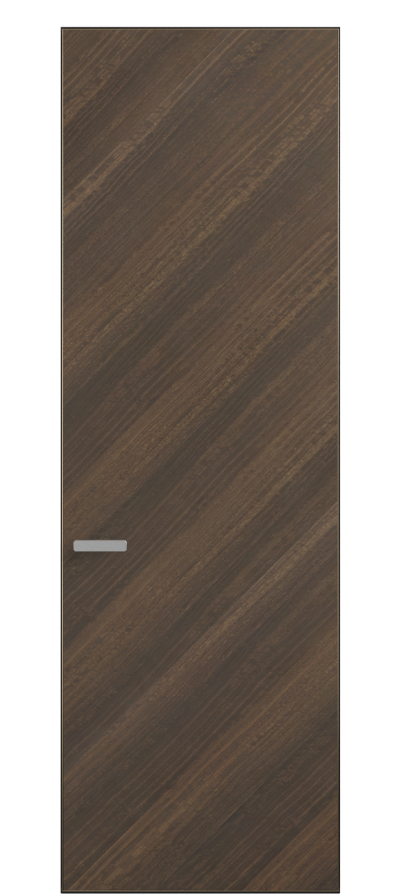 Полотно Рифт в скрытом алюминиевом коробе становится полноценным элементом декора. В коллекции представлено 9 моделей дверей в высоте до 3 метров. Рисунок раскладки шпона варьируется от простого до сложного. «Рубашка» для каждого полотна подбирается вручную по цвету, текстуре и фактуре.